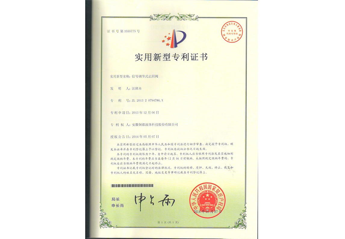 信號(hào)調(diào)節(jié)式止回閥
