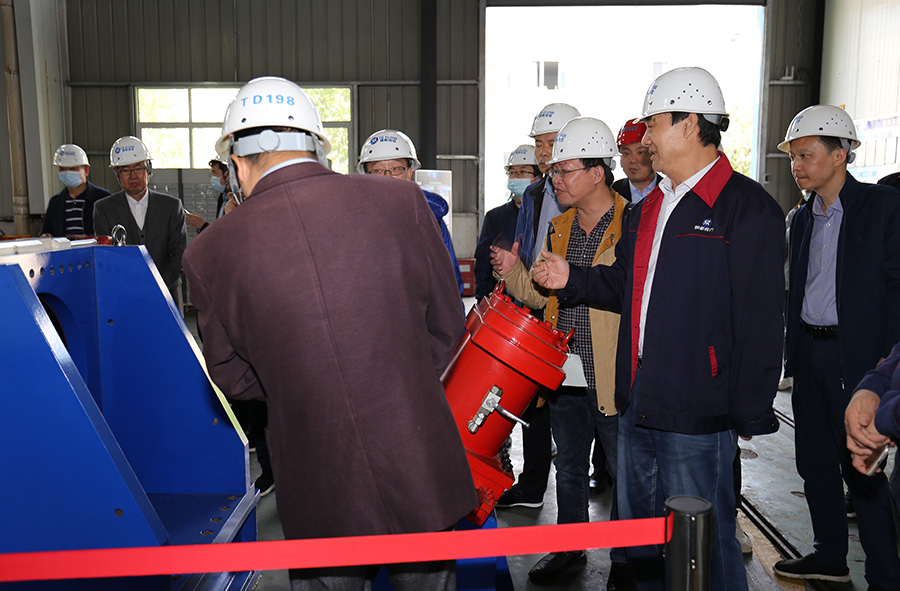 銅都流體董事長(zhǎng)楊成陪同與會(huì)專家參觀工廠