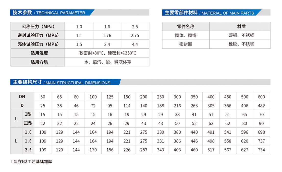 本廠生產的H74Ⅰ型Ⅱ型對夾圓片式止回閥是一種超薄型止回閥。采用短型結構尺寸和單閥瓣設計,相比傳統的旋啟式止回閥,該系列閥門具有無外泄露、可任意位置安裝、密封性能好、線性震動小、壓降小和零座圈磨損優(yōu)勢,主要適用于給水系統、石油、化工、冶金等行業(yè)對有安裝空間限制的場所。